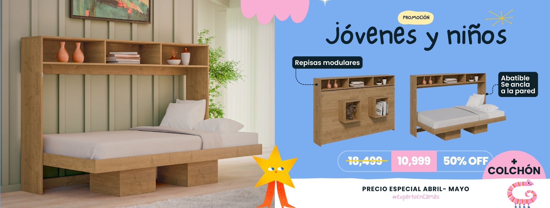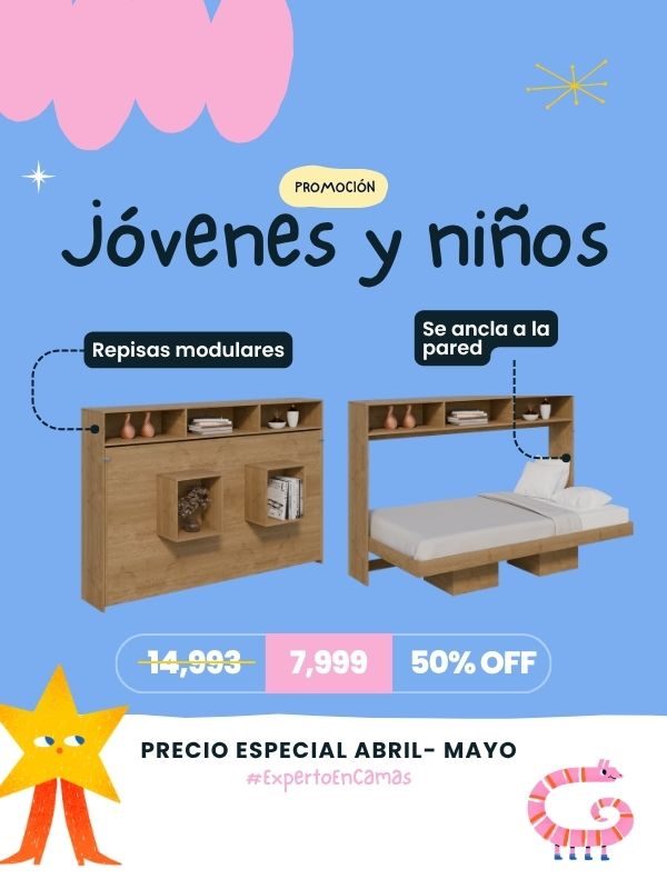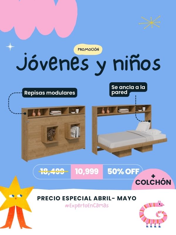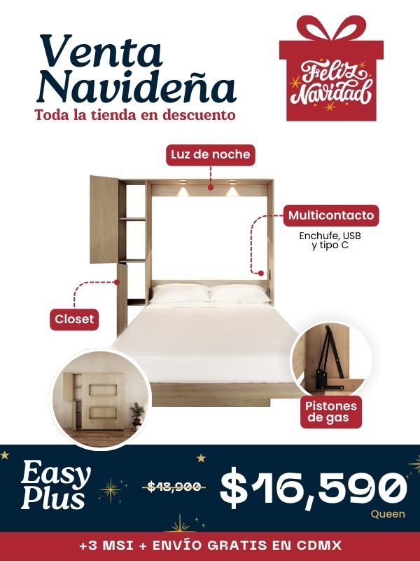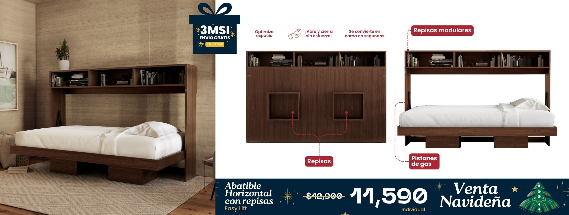 ¡Libera tu espacio con nuestra cama esencial! Abre tu cama escondida atrás de un par de estantes y un práctico librero lateral y en segundos… ¡ten ...